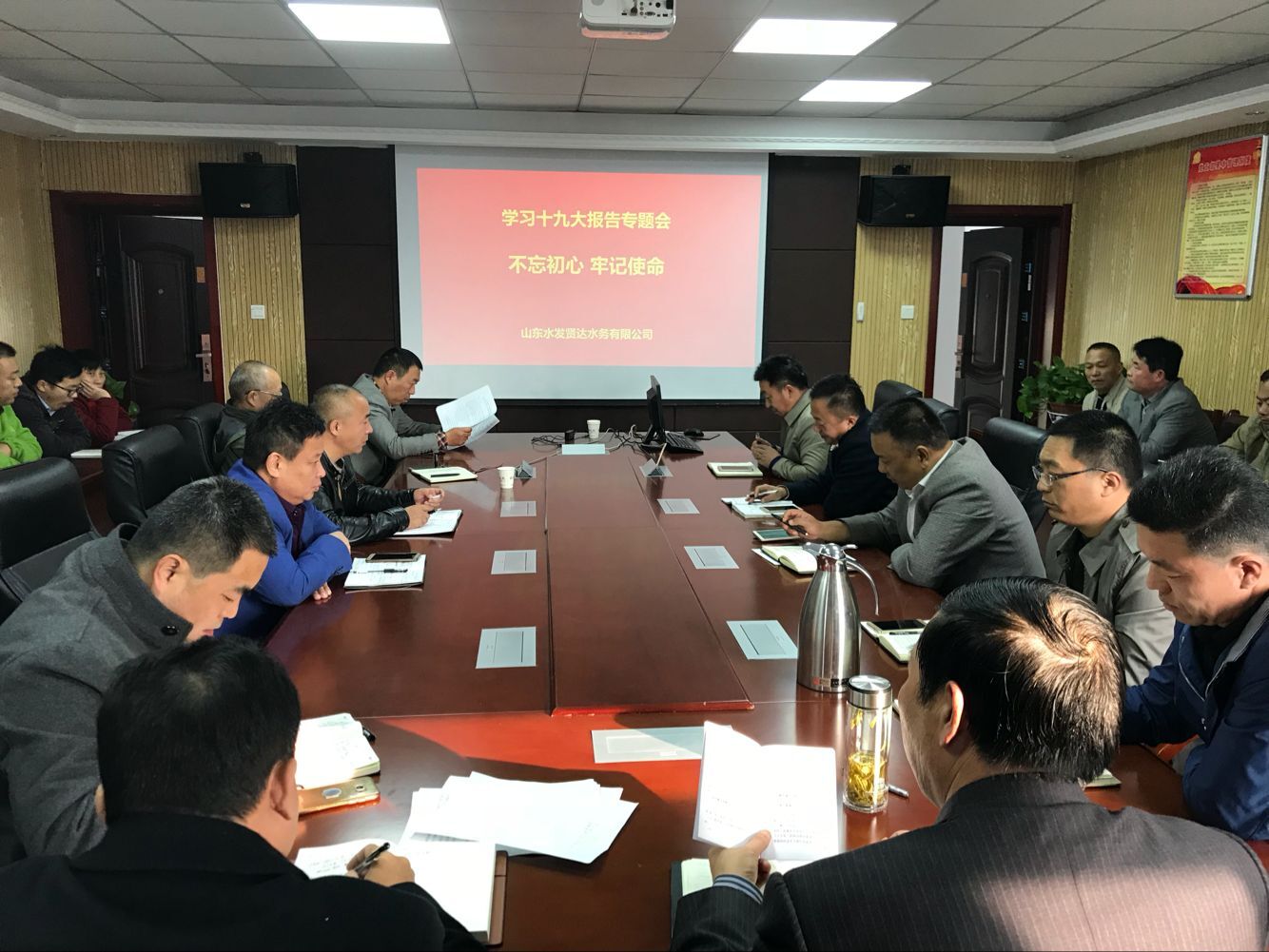 為了貫徹落實水發(fā)集團(tuán)關(guān)于學(xué)習(xí)十九大精神的要求,更好地組織引導(dǎo)公司廣大干部職工學(xué)習(xí)十九大精神,為公司供水事業(yè)增添正能量,12月4日,公司召開專題學(xué)習(xí)會議,認(rèn)真學(xué)習(xí)黨的十九大精神,深刻理解和準(zhǔn)確把握習(xí)近平總書記十九大報告的精神實質(zhì)和科學(xué)內(nèi)涵。