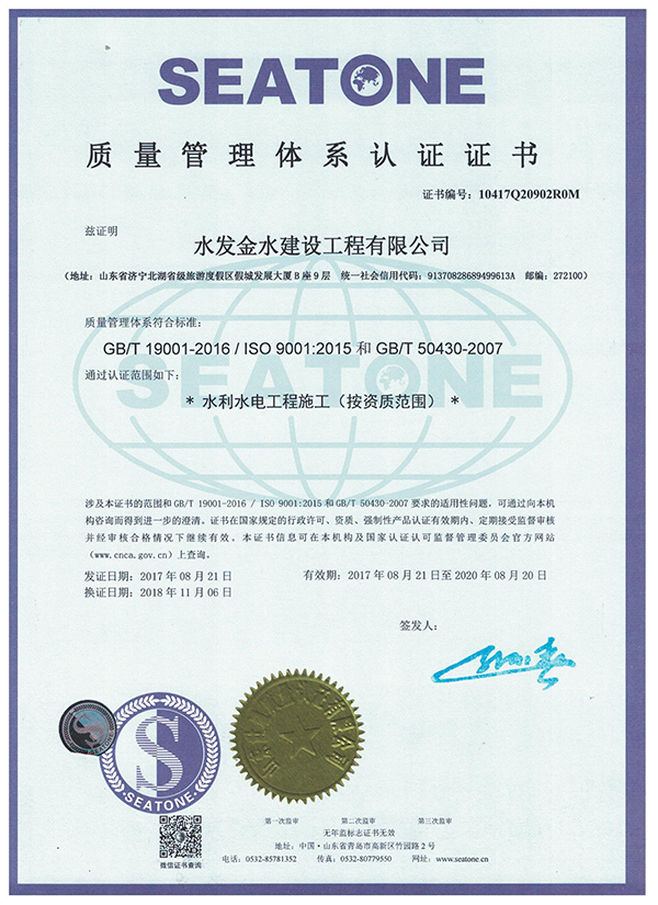 水發(fā)金水建設(shè)工程有限公司 三體證書-質(zhì)量