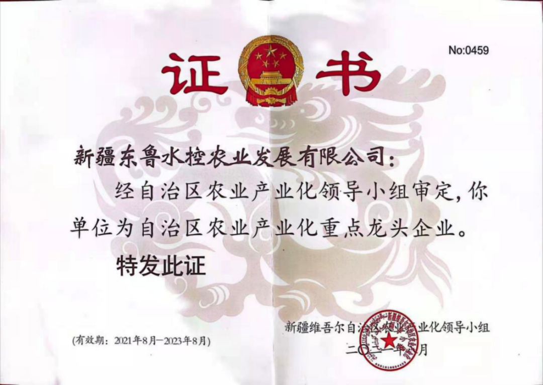 【農(nóng)業(yè)產(chǎn)業(yè)化重點龍頭企業(yè)】新疆東魯水控農(nóng)業(yè)發(fā)展有限公司
