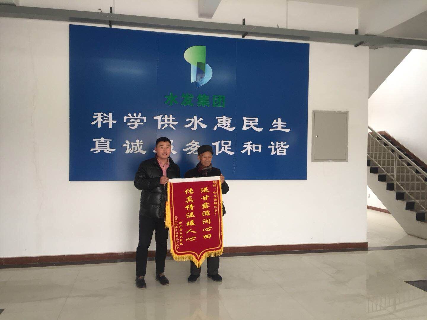 1月1日,元旦新年第一天,正當山東水發(fā)金源水務有限公司城北水廠工作人員緊張工作之際,公司大門外響起一片鞭炮聲,原來金鄉(xiāng)縣大義社區(qū)居民張XX,代表全社區(qū)數(shù)千居民,將一面 “送甘露滋潤心田,傳真情溫暖人心”的錦旗送到了水廠負責人的手中,向公司表達了真摯的謝意。