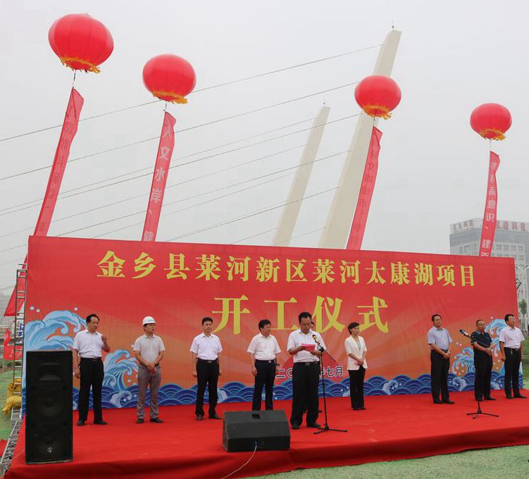 7月28日,萊河新區(qū)萊河太康湖項目開工儀式在金鄉(xiāng)縣舉行。金鄉(xiāng)縣委書記董冰,縣委副書記、縣長鄭士民,縣人大常委會主任付元琦,縣政協(xié)主席胡桂生,山東水控發(fā)展集團有限公司董事長吳東振、總經(jīng)理李加坤,濟寧金水水利工程有限公司,縣財政局、國土局等政府各部門主要負(fù)責(zé)人150余人出席開工儀式。儀式由縣委副書記、縣長鄭士民主持。