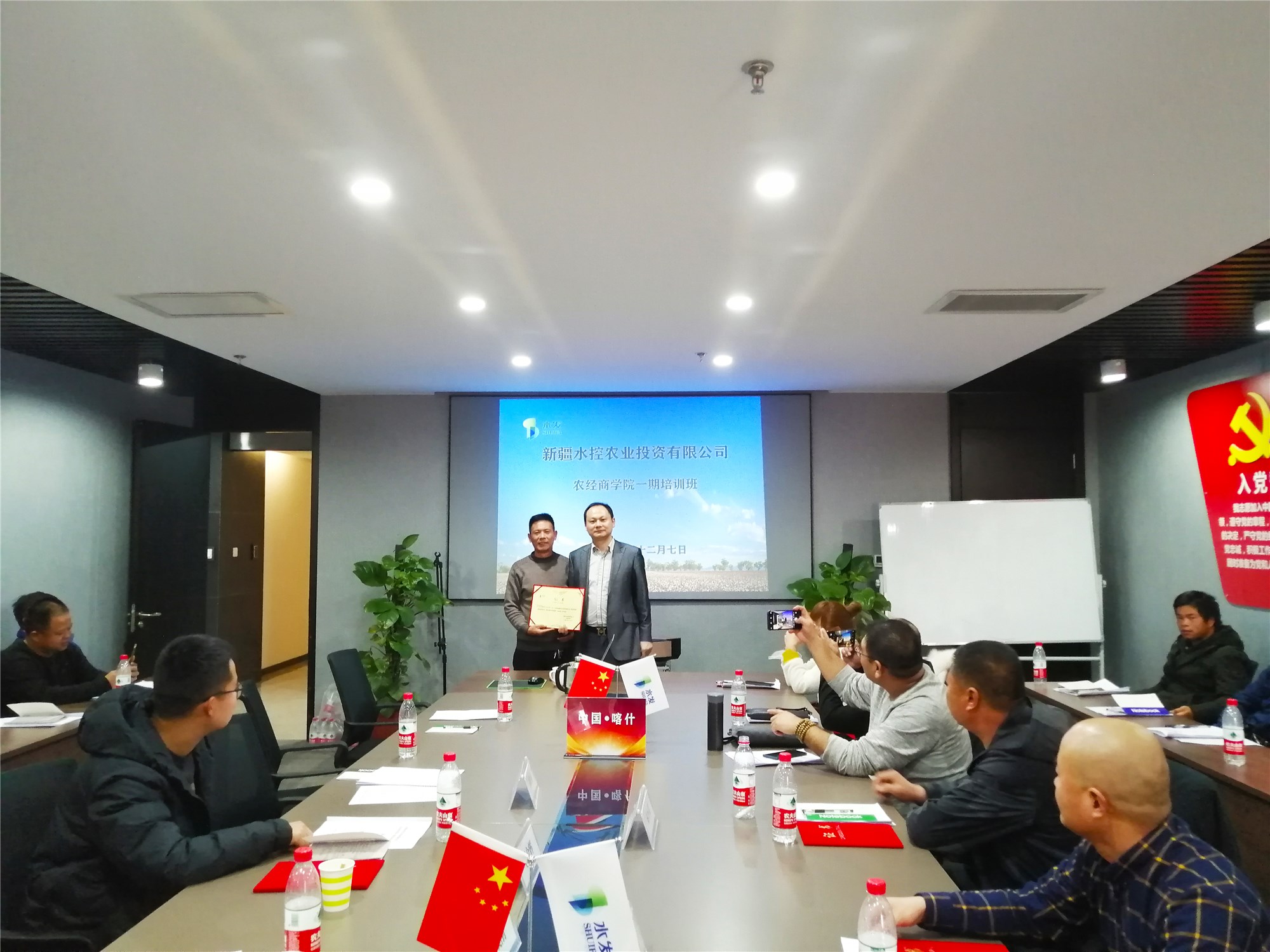 開班儀式上,王占先以“扎根新疆,合作共贏,共創(chuàng)農(nóng)業(yè)全產(chǎn)業(yè)鏈閉環(huán)運營新模式”為主題,介紹了水控農(nóng)發(fā)集團(tuán)、新疆水控農(nóng)業(yè)投資有限公司的發(fā)展歷程、現(xiàn)狀、未來五年的發(fā)展目標(biāo)以及農(nóng)業(yè)全產(chǎn)業(yè)鏈閉環(huán)運營的新模式。該模式以土地承包經(jīng)營權(quán)為核心,全力整合上下游資源,實現(xiàn)“土地流轉(zhuǎn)分包-智慧農(nóng)業(yè)管理-農(nóng)資農(nóng)機(jī)及融資服務(wù)-棉花收購加工銷售”的閉環(huán)運營,打造上下游多方利益共同體。該模式受到了與會種植合作單位代表的高度認(rèn)同和積極參與。 高級農(nóng)藝師李孟玉,曾創(chuàng)下了兵團(tuán)棉花高產(chǎn)三連冠的佳績,李老師以“棉花水肥一體化運籌技術(shù)”為主題,向與會學(xué)員講授了棉花種植不同時期水肥運籌的關(guān)鍵技術(shù)點,并就學(xué)員遇到的實際困難和問題,進(jìn)行了深入淺出的講解。公司科技部負(fù)責(zé)人、農(nóng)藝師劉和平,以“南疆棉花、甜菜豐產(chǎn)栽培關(guān)鍵技術(shù)”為主題,對棉花、甜菜種植的全過程,進(jìn)行了系統(tǒng)的講解。公司副總經(jīng)理管海龍,向與會學(xué)員介紹了水控農(nóng)發(fā)集團(tuán)的具體惠農(nóng)政策。培訓(xùn)課程由公司副總經(jīng)理張弛主持,在完成了預(yù)定培訓(xùn)課程和筆試考核后,一期培訓(xùn)班圓滿結(jié)束。