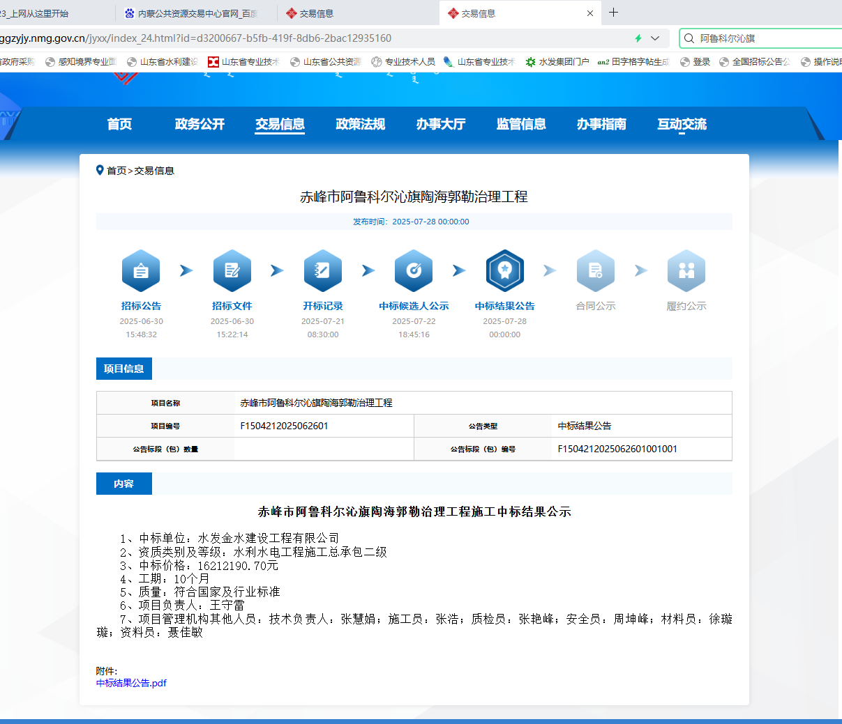 近日,內(nèi)蒙古赤峰市阿魯科爾沁旗陶海郭勒治理工程施工項(xiàng)目招標(biāo)結(jié)果揭曉,水發(fā)金水建設(shè)工程有限公司成功中標(biāo)。