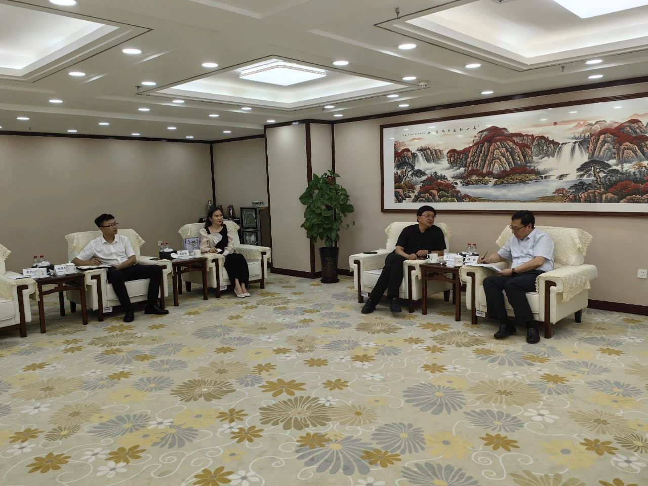 中國農業(yè)發(fā)展銀行新疆分行黨委委員、副行長劉彬,糧棉油客戶處處長王建喜,產業(yè)客戶處副處長馬麗,新疆水發(fā)農業(yè)集團有限公司財務總監(jiān)周麗梅,新疆水發(fā)現(xiàn)代農業(yè)發(fā)展有限公司董事長陳更林,新疆水發(fā)益爾農業(yè)科技有限公司總經理李勝利及雙方相關部門負責同志參加座談。