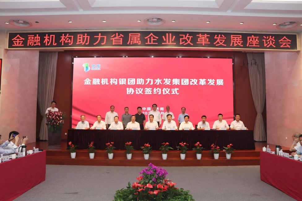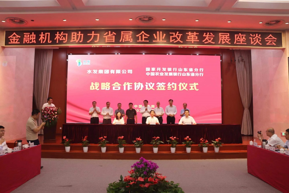 會上,國家開發(fā)銀行山東省分行、中國工商銀行山東省分行、中國建設銀行山東省分行、中國銀行山東省分行、中國農(nóng)業(yè)銀行山東省分行、中信銀行濟南分行、恒豐銀行濟南分行、民生銀行濟南分行、渤海銀行濟南分行等銀行與水發(fā)集團簽署了金融機構銀團助力水發(fā)集團改革發(fā)展協(xié)議,國家開發(fā)銀行山東省分行、中國農(nóng)業(yè)發(fā)展銀行山東省分行分別與水發(fā)集團簽署了戰(zhàn)略合作協(xié)議。
