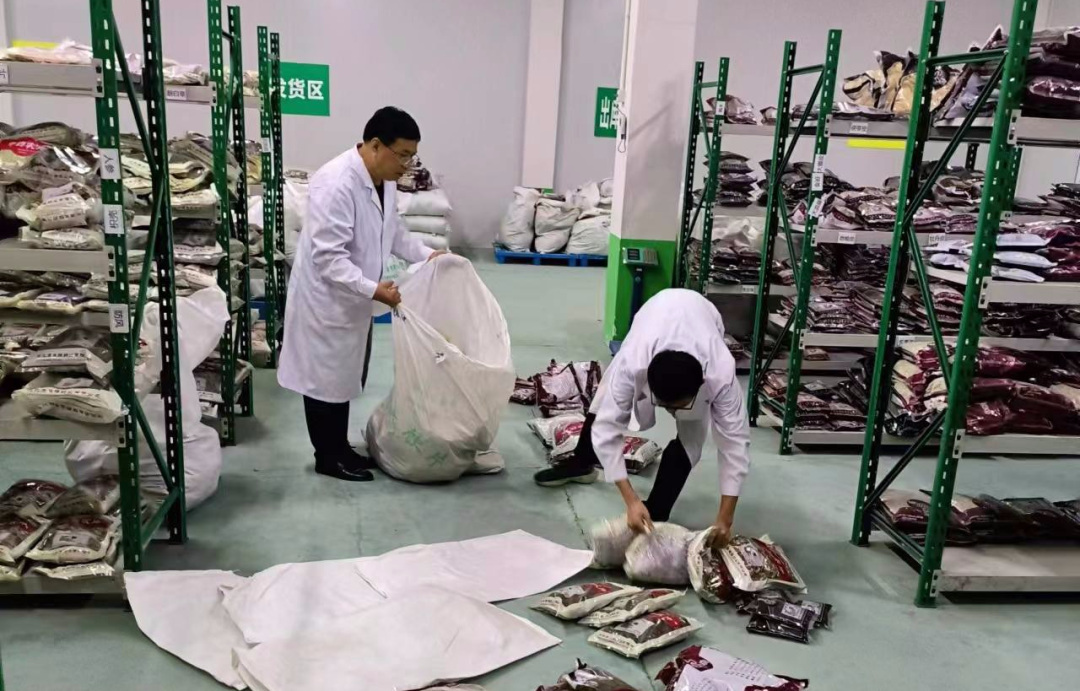 ▲德欣公司副總經理宋明嶺和值班員董建呈在假期期間為客戶揀貨并發(fā)貨,保證假期工作“不斷檔”。